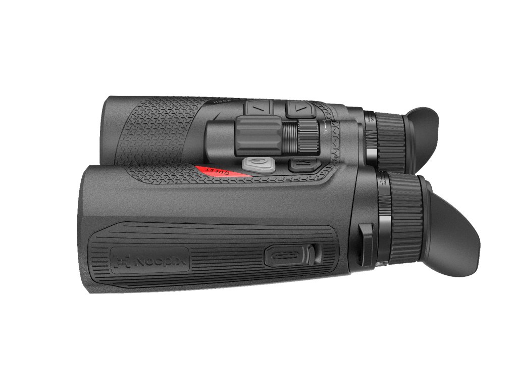 Termovizní binokulár QUEST s rozlišením senzoru 640x512px, NETD pod 15mK, obnovovací frekvencí 60Hz, Algoritmem REALITY +, digitální stabilizací obrazu, N-Link propojením s balistickým výpočtem a laserovým dálkoměrem.
